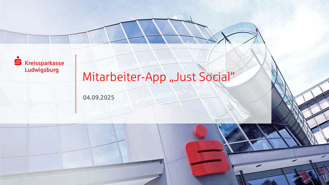 Zunächst erfahren wir in einer kurzen Einführung, dass „Just Social“ ein Unternehmen aus Hamburg ist. Und wir hören weiter, dass viele Unternehmen diese Kommunikationsform als Intranet-Ersatz einsetzen. Warum hat sich auch die KSK für dieses zusätzliche Medium entschieden? Nun, während Intranet ja eine überwiegend sehr textorientierte Kommunikationsplattform ist, bietet „Just Social“ auch die Möglichkeit, Bild-, Film- und Tonaufnahmen einzustellen und für alle Benutzer (aktive Mitarbeiter sowie Pensionäre) zugänglich zu machen, und vor allem auch eigene Beiträge einzustellen. Es legt damit Wert auf soziale Interaktion und benutzerfreundliche Kommunikation. Darüber hinaus ermöglicht und fördert es die direkten Interaktionen wie z.B. Likes und Kommentare.
